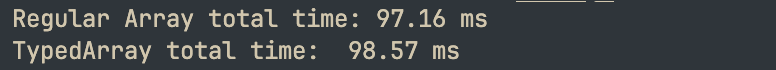 잘 최적화된 일반 배열과 TypedArray 사이의 차이는 무시할 수 있는 수준이었으며, 때로는 오차 범위 내에 있었습니다. TypedArray의 장점은 성능을 더 높이는 것이라기보다, 조건이 이상적일 때 얻을 수 있는 그 성능을 "보장"하는 것에 가깝습니다.